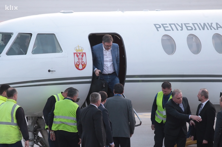 Vučića je na Međunarodnom aerodromu Sarajevo dočekao ministar vanjskih poslova BiH Igor Crnadak.