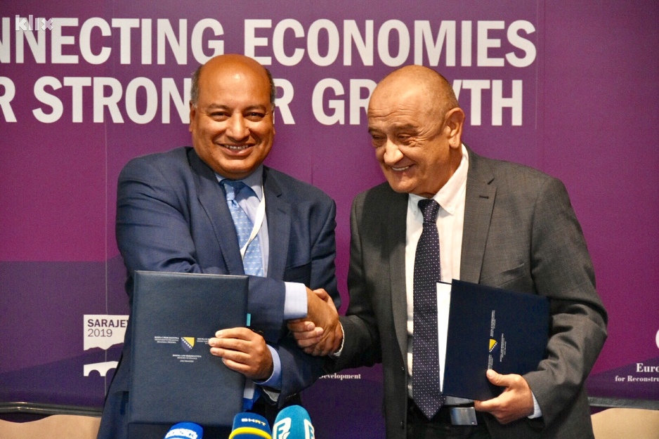 Predsjednik EBRD-a Suma Chakrabarti i ministar finansija BiH Vjekoslav Bevanda potpisali su danas u Sarajevu Ugovor o kreditu u vrijednosti 210 miliona eura za izgradnju dionice “obilaznica kod Doboja” na Koridoru 5C.