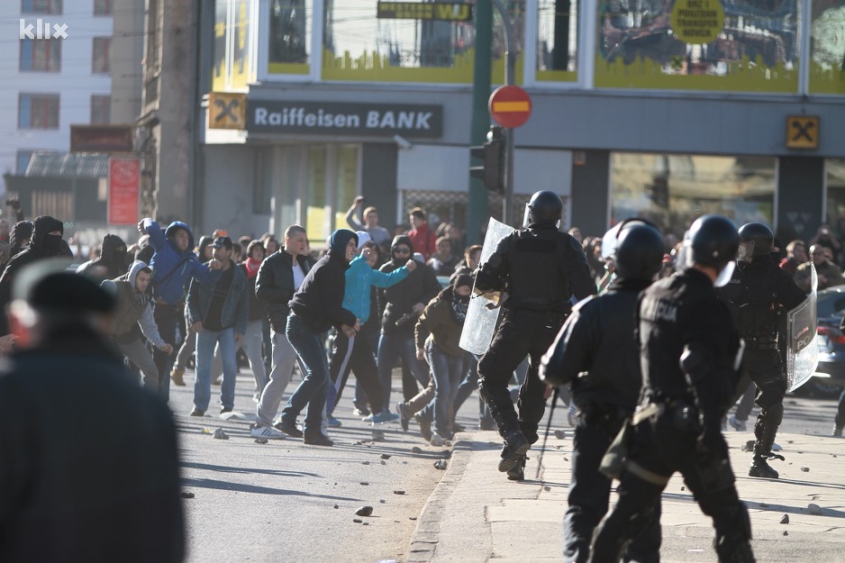 14:24 – U Sarajevu sukob policije i demonstranata, više povrijeđenih.