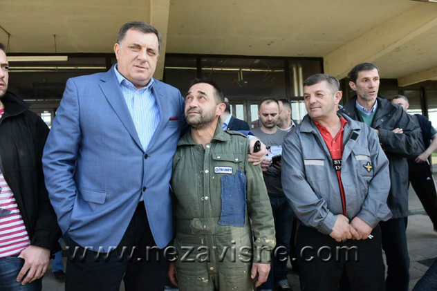 Predsjednik RS-a je popio piće sa radnicima koji su koristili trenutke dok je predsjednik još tu kako bi mu svaki izložio svoj problem.