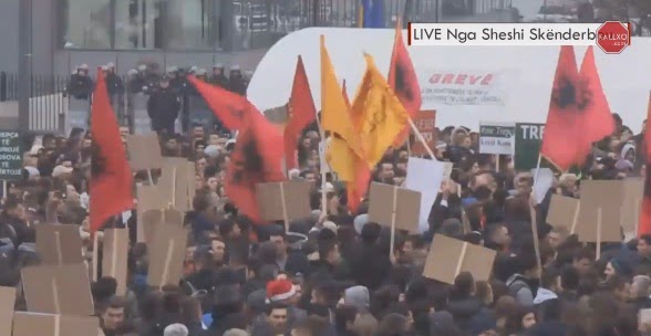 Okupili su se na poziv dijela opozicije, koja je odlučna onemogućavati zasjedanje Skupštine sve dok premijer Isa Mustafa ne poništi sporazume.