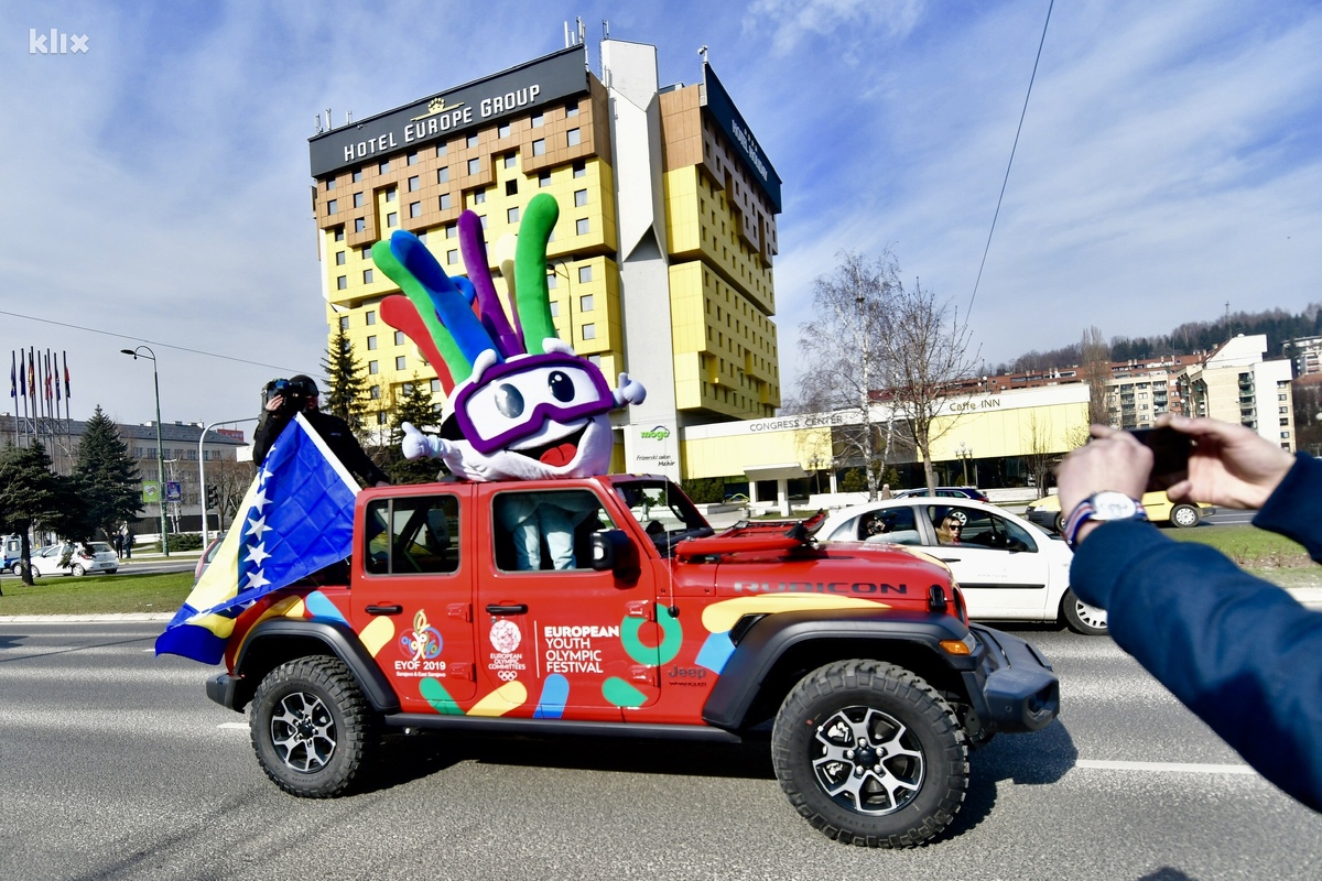 S druge strane svi koji su se nalazili u koloni vozila koja je krenula sa Ilidže prema centru grada, a zatim dvorani Zetra, sirenama su ih pozdravili i podsjetili da sutra počinje EYOF.