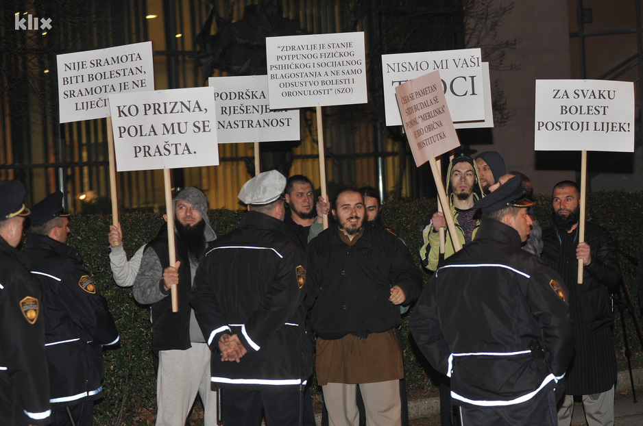 Grupa od blizu 20 muškaraca protestovalo je u neposrednoj blizini Ateljea Ismet Mujezinović u Tuzli u kojem se održava festival.