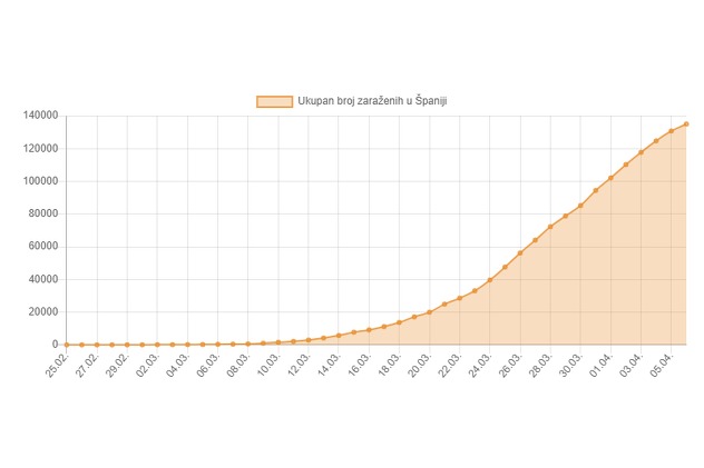 Prema podacima španskog ministarstva zdravstva, Španija je do sada registrovala ukupno 135.032 osobe zaražene koronavirusom.
