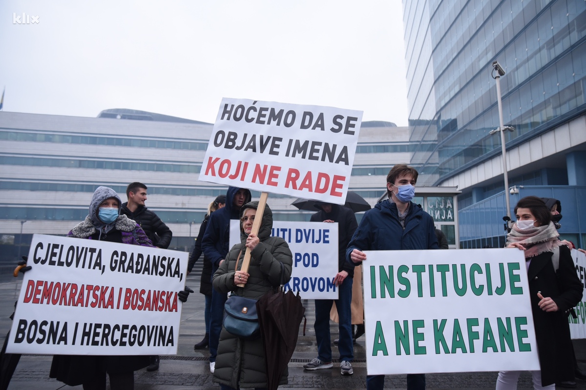 Stotinjak građana se okupilo na protestima ispred Parlamenta Bosne i Hercegovine u Sarajevu.