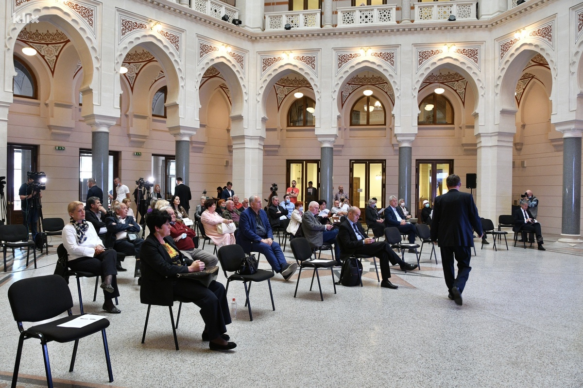 Današnji gosti sarajevske Vijećnice su građani kojima će se obratiti i gradonačelnica Sarajeva Benjamina Karić te Dženana Karup Druško u ime Savjeta gradonačelnika za Informativni centar o MKSJ Sarajevo.