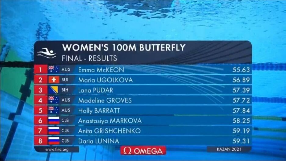 “Bosno i Hercegovino budi ponosna, imaš na koga. Lana Pudar treće mjesto na Svjetskom kupu u Kazanu u disciplini 100 metara delfin s vremenom 57.39. Prva medalja u historiji BiH na Svjetskom kupu. Kapa do poda Lana, čestitke trenerima Aleni i Goranu. Idemo dalje, nema stajanja”, saopštili su iz Laninog Kluba vodenih sportova Orka.