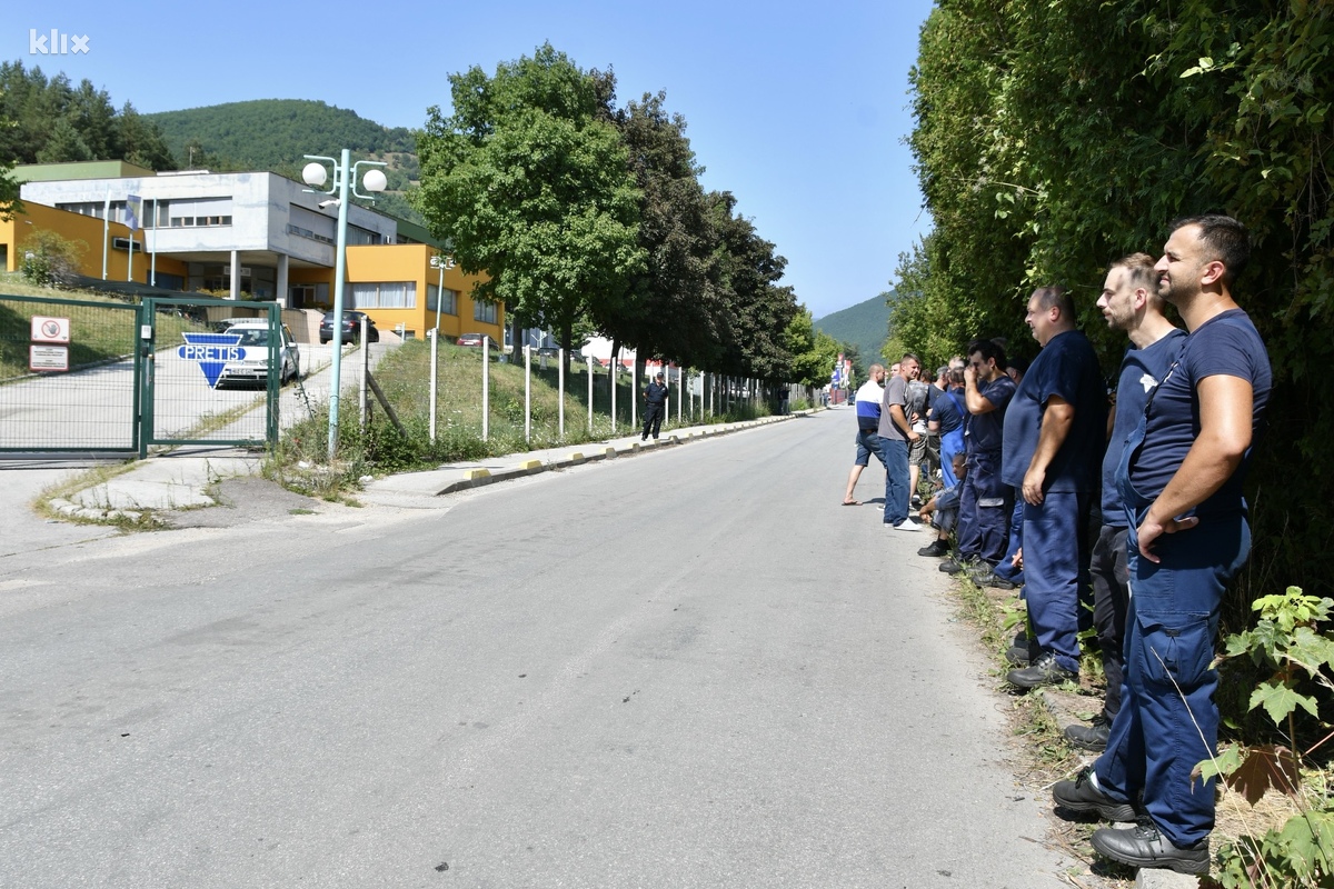Radnici Pretisa su danas obustavili rad i protestovali u krugu preduzeća u Vogošći zbog kašnjenja junske plate. Oni su danas pokušali razgovarati s upravom kako bi saznali kada će dobiti platu, međutim bezuspješno.