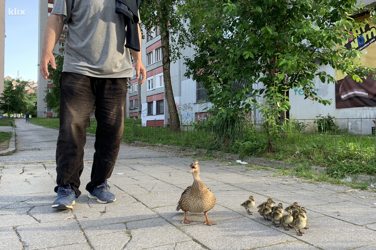 Sarajlija, koji nije otkrio svoje ime, rekao je kako je patku i pačiće pronašao u bašti na Mojmilu.