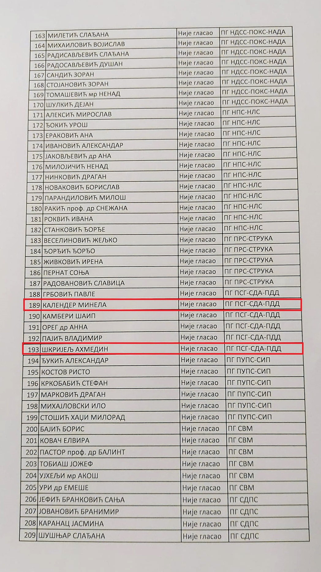 Pokret slobodnih građana i Stranka demokratske akcije Sandžaka (SDA) podnijeli su 3. jula Skupštini Srbije prijedlog rezolucije o genocidu u Srebrenici. Poslanici SDA bili su prisutni u Skupštini prije razmatranja tačke o Srebrenici, ali kada je došlo vrijeme za glasanje nisu podržali sopstvenu inicijativu niti su obrazložili svoj prijedlog, što je izazvalo pažnju javnosti.