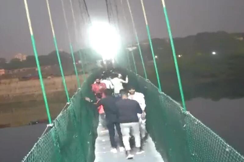 Sigurnosna kamera je snimila trenutak rušenja visećeg mosta u Indiji, a snimak se danas pojavio na društvenim mrežama.