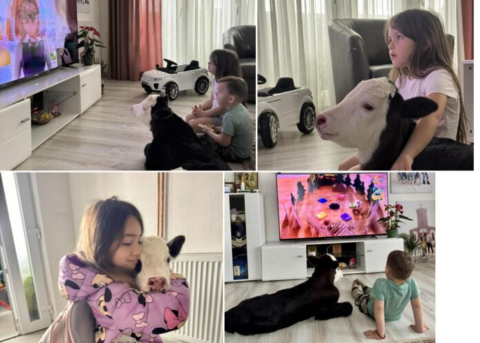 Iako su ga narednog dana vratili majci, stanje se ponovo pogoršalo, pa je porodica odlučila da ga ponovo unese u kuću i pruži mu dodatnu njegu. Uz pomoć toplote, sušenja i savjeta veterinara, tele je postepeno počelo da se oporavlja. Danas, ovo malo tele više nije samo domaća životinja – postalo je ravnopravan član porodice. Djeca ga obožavaju, maze, hrane, a najneobičniji prizor je onaj kada zajedno sjede i – gledaju crtane filmove.