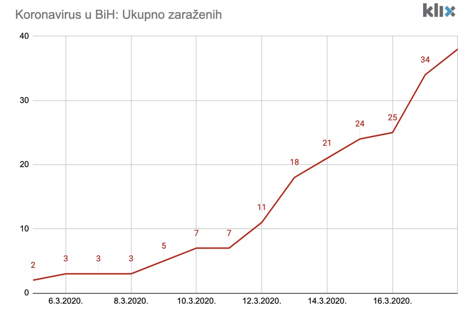 Uz ova dva slučaja ukupan broj oboljelih od koronavirusa u BiH je 38.