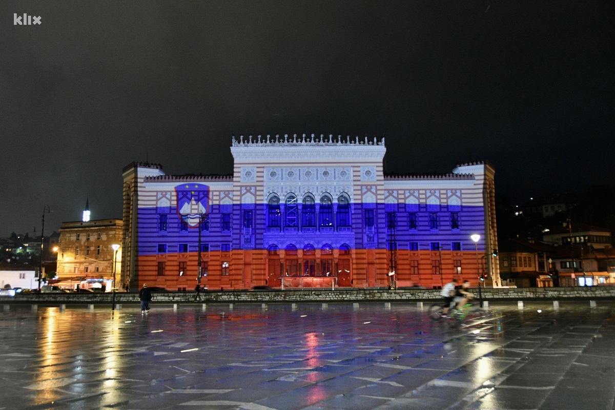 Republika Slovenija je danas preuzela predsjedavanje Vijećem Evropske unije, a odvijat će se pod sloganom “Zajedno. Otporna. Evropa”. Tim povodom osvijetljena je sarajevska Vijećnica.