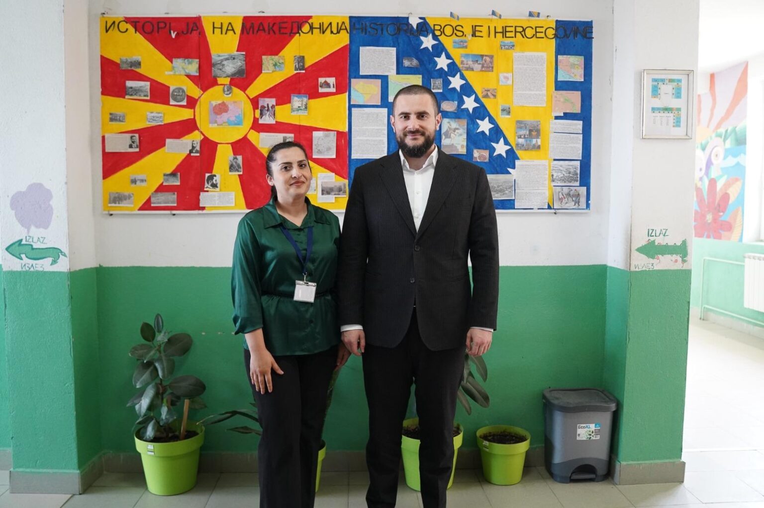 U okviru posjete, ministar je obišao i Osnovnu školu „Rajko Žinzifov“, gdje je razgovarao s direktoricom, Amrom Hodžik. Tom prilikom istaknuto je da je ova škola jedina obrazovna ustanova u Sjevernoj Makedoniji u kojoj se nastava izvodi na bosanskom jeziku, kao i da je trenutno pohađa oko 170 učenika.